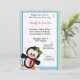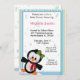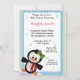 Cute penguin baby shower invitations just for girls. Colourful background. Penguin has a cute green hair bow and is standing on an iceberg. Kristi W/Graphic's n Bits.