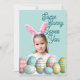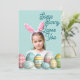 Girl Photo Bunny Ears Cute Blue Holiday Card