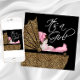 Adorable leopard baby carriage with baby girl wearing a cute pink outfit and headband. This cute black, white and pink leopard baby shower invitation is easily customised for your event by adding your event details, font style, font size & colour, and wording.