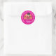 Girl Pink Parrot Pirate Party ADDRESS Classic Ro Round Sticker