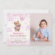 Girl Pink Teddy Bear Balloons First Birthday Invitation