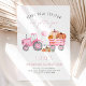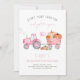 Farm Pink Tractor & Pumpkins Fall Birthday Party Invitation