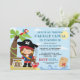 Ahoy me hearties! This is your captain speaking! I'm calling all kids for a pirate party adventure. Shiver me timbers you'll be dancing a jig with this pirate party invitation. Featuring a loveable pirate that has just found her treasure. All aboard for the pirate party or walk the plank! Arrrghhh!