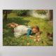 Girl Playing with Chicks (Hen and Chicken) Poster