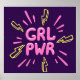 Girl power movement. Feminist slogan grl pwr on violet background. Feminist movement, protest action, girl power. Vintage illustration