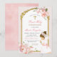 Girl Praying Gold First Holy Communion Pink Floral Invitation
