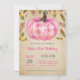 Pumpkin First Birthday Invitation. Pink and Grey. Watercolor Pumpkin Leaves. Girl Bday Party Invite. Vintage Retro Background. 1st 2nd 3rd 4th 5th 6th 7th 8th 9th 10th, Any Ages. For further customisation, please click the "Customise it" button and use our design tool to modify this template.