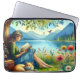 Girl Reading a Book under a Tree with a Sleepy Cat Laptop Sleeve