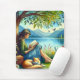 Girl Reading a Book under a Tree with a Sleepy Cat Mouse Pad