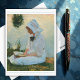 Sargent spent the summer or early autumn between 1885 and 1889 in the English countryside. The present study is undated and the model unidentified. A young girl is represented in profile, seated cross-legged beside a stream, reading a book. Her dress is difficult to pin down, reading more as picturesque costume than as a contemporary garment. There is no horizon to provide context, the picture plane is tipped up so that the water provides the reflective background, and there is a sense created of an enclosed natural space.