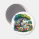 Girl Reading under a Tree Surrounded by Flowers Magnet