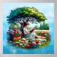 Girl Reading under a Tree Surrounded by Flowers Poster