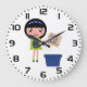 Girl Recycling Pizza Box Fun Eco-Friendly Large Clock