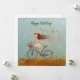 painting of a cute girl with long hair containing hearts riding her bicycle