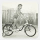 Girl (6-7) riding bicycle with side wheels, (B&W) | George Marks | AssetID: 57539552