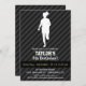 Girl Running; Black & Dark Grey Stripes Invitation