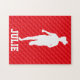 Girl Running; Scarlet Red Stripes Jigsaw Puzzle