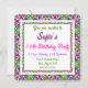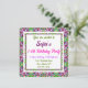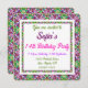 Girl’s Bold Fall Green Autumn Pink Birthday Invitations. A bold, colorful square invitation card for your daughter to give out to their friends and family to invite them to their birthday party. Change the text to your own using the Personalize button. Or edit the colors and layout in the design tool. The colors of the text are drawn from the colors of the vibrant border. The colors of the border work for birthdays late Summer and Autumn (Fall). The text contains all the important details, such as the birthday child’s name, age, time and date, and location of the party venue. A joyous, bold, tropical color inspired invitation for an important celebration. The back of the invites show a pretty pattern, that can be kept as a pretty wall decoration or decorative keepsake by the recipient.