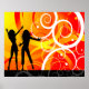 Funky custom poster with an elegant vector illustration of 2 girl silhouettes dancing on a beautiful abstract background of red, yellow & white swirls & flourishes - halimarina @ www.vectoropenstock.com - A cool and stylish original gift for teens and dancers. Poster can be made larger or smaller and can be printed on various types of paper & canvas.