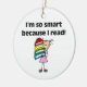 Cute stick figure girl with a pile of books design that promotes reading in children with text that reads "I'm so smart because I read!".