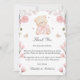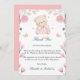 This girl baby shower thank you card includes a watercolour teddy bear with pink bow, butterflies, stars and a floral border.