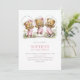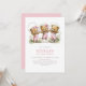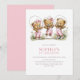 Girl Teddy Bears In Pink Overalls 1st Birthday Invitation
