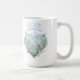 Pretty mug for the "Girl Who Loves Dragonflies". Watercolor heart in the background with four dragonflies and a floral design, with blue lettering arched above the heart and dragonfly design.