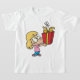 Father’s day is a special day of the father and there kids. This design celebrates father’s day as it is of a girl with a fathers day gift. She is holding up the present to give to her father. This girl with a fathers day gift design looks great on this girls t-shirt. Perfect for yourself or as a gift
