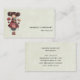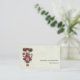 Business card with a cute retro image featuring a whimsical girl with rosy cheeks and flowers in her hair. Carrying a green frog doll.