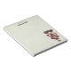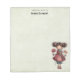 A notepad with a cute retro image featuring a whimsical girl with rosy cheeks and flowers in her hair. Carrying a green frog doll.