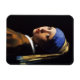 Johannes Vermeer Girl with a Pearl Earring magnet. Oil painting on canvas circa 1665. Often called the Mona Lisa of the North, Girl with a Pearl Earring is Johannes Vermeer’s most famous painting. The pearl earring serves as a focal point of reference from which the three different colour spheres of the painting emanate. The blue and yellow headscarf and mustard shawl are also cleverly highlighted by the stark white collar, the whites of the eyes, and the wet red lips. A great gift for fans of Johannes Vermeer, baroque painting, and Dutch art.