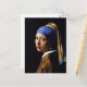 Johannes Vermeer Girl with a Pearl Earring postcard. Oil painting on canvas circa 1665. Often called the Mona Lisa of the North, Girl with a Pearl Earring is Johannes Vermeer’s most famous painting. The pearl earring serves as a focal point of reference from which the three different colour spheres of the painting emanate. The blue and yellow headscarf and mustard shawl are also cleverly highlighted by the stark white collar, the whites of the eyes, and the wet red lips. A great gift for fans of Johannes Vermeer, baroque painting, and Dutch art.