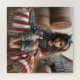 Girl With American Flag And Kitten Jigsaw Puzzle