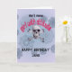 Skull and crossbones birthday card for a goth girl or rock chick, on a gray mandala pattern background Front message reads "Don't mess, girl with attitude" and "happy birthday name". Personalize by changing the name.