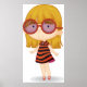 A girl with big glasses and wearing a striped dress. This design looks really effective on these Poster