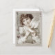 Made from vintage picture of a young girl that is receiving a love letter from a carrier pigeon. Her expression is soft and dreamy.