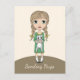 Sending Hugs. A Cute girl holding a cat. Whimsical art drawing with big green eyes, brown hair, ash blonde, green dress, and an adorable grey cat. Digital art Illustration hand-drawn by Donna Leger. You can change the custom text to any message you want. Show someone that you are there for them, thinking of them and sending them warm hugs, whether it's during difficult and hard situations that you're sending caring thoughts and encouragement. Also for different occasion and expressions like for sympathy, get well, thinking of you, keeping in touch, missing you, and more.