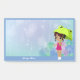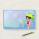 Girl With Frog Umbrella & Hydrangea Flowers Blue Post-it Notes
