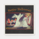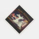 Halloween party napkins with customisable text and a vintage image of girl looking in a mirror to see a Spooky Ghost behind her - a trick from some little Halloween sprites!