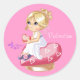 Classic round stickers, with Girl with Hearts design, licensed from Graphics Factory, with MoonDreams Music logo