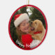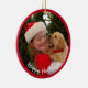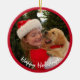 What could be more exciting than a new puppy at Christmas! Sweet young girl in Santa hat holds her new puppy. Puppy wears a red collar. Christmas tree lot is in the background. A fun gift or decoration for your tree. Stunning Christmas ornaments for your home or for gifts. Easily change text to your own. Also change the photo to one of your own if you wish.
