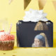 Girl with pearl earring blowing a bubble gum wrapping paper
