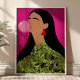 This funky art poster features a playful illustration of a girl blowing bright pink bubblegum, blending bold colors with whimsical style. The expressive design captures fun, attitude, and modern charm, making it a lively statement piece. Perfect for bedrooms, studios, or eclectic spaces, this poster adds a pop of personality and vibrant energy to any wall.