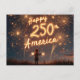 Silhouette of a little girl with sparklers and fireworks that light up the night sky in a stunning display, celebrating America's 250th birthday with the words "Happy 250th America".