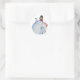 Coloured pencil illustration of a girl in a red dress, sipping from a soothingly large cup of tea while leaning against a giant blue teapot and contemplating life contentedly.