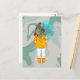 Girl with Umbrella in Wind Rain Green Swirl Postcard