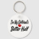 Keychain with I'm my girlfriend's better half in 3D black text.