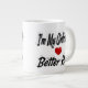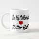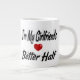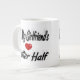 Mug with I'm my girlfriend's better half in 3D black text. Available in several sizes and styles.