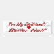 Bumper sticker with I'm my girlfriend's better half in 3D red text.
