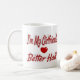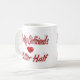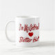 Mug with I'm my girlfriend's better half in 3D red text. Available in several sizes and styles.